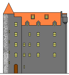 The Kirsten Hotel, Lash-l'rou![]() The Kirsten Hotel is located in the town of Lash-l'rou just east of the Pogin-mim mound that houses the University of Estalia. One of the premier hotels in the Castello Chain, it nevertheless has only eight guest rooms. There is also, of course, the saloon, known as "The Student Riot" but officially "The University Arms"; it is not, however, a hang-out not for students but rather for faculty, who also frequent the dining room and its adjoining chambers. The Card Room is the unofficial club-house for the conservative faction. This hotel was built entirely new in 1897, although it, like all the other hotels, has a Scottish Baronial style appearance. Janet Hotel, Pumfrit![]() The Janet Hotel in the Pogin-mim town of Pumfrit is the smallest hotel in the Castello Chain. It is a simple tower-house with an adjoining bar ('The Pumfrit Head'); there are only four additional bedrooms on the two upper floors not shown here. There are two-storied roundels on the corners, which give the building a French chateau appearance. |