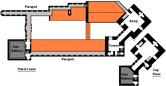 ![]() ![]() Whitcraft FortletsThree small forts of the same design were built to fill defensive gaps by Archduke Hralrlfladenulel in Napoleonic times. They were named after Whitcraft, who designed the earlier towers in the 17th Century, but had nothing to do with him. Fort Sil (WF-1) in the northeast is on the shore of Lake Sil, not far from the Almondese city of Ffanshoe. Fort Liver (WF-2) is just to the north of the town of Hamnet, facing Nuorgk on the Almondese side of the river. And Fort Poggit (WF-3) covers the entrance to the Great Marsh, with the town of Kajudder on the Almondsey side. (Just northwest of this fort, on the edge of a ravine, is The Catriona Hotel in the town of Ho.) These are really not much more than 'thumb-your-nose' forts as they are opposed to three of the strongest walled towns in Almondsey, which is very amusing to the populace of the latter; but that didn't stop the Nuorgkers from blowing up the Fort Liver watch tower in 1840. Fort Liver was then decommissioned and now serves as a dormitory for the Lord Poggit farm estate -- the largest agricultural business in the county.![]() Hamnet Castle and Fort LorigHamnet, the capital of North Estalia, has its own web page and will not be discussed here, except to say that it has, of course, its own river fort (Ft. Liver) and castle.Fort Lorig, sited across the river from the Almondese walled town of Kajudder is not illustrated on this page. It was destroyed in 1840 by a combined force of Nuorgkers and Kajuds and only the impressive ruins remain. There was an older castle here, but it was torn down in 1803 (except for the keep) to make way for a large artillery fortification with redans, covered ways, and a glacis, located a quarter mile to the south. Ever a military site only, there was no civilian settlement nearby to speak of, but now the old keep is the centerpiece of the Fort Lorig Seminary, a minor college for priests of Thud/Lott, but the only 'establishment' one in North and West Estalia. Paladrian CastleThis grand archducal castle in the Lin Gorge has been given its own web page. |